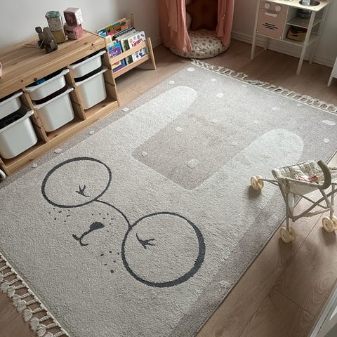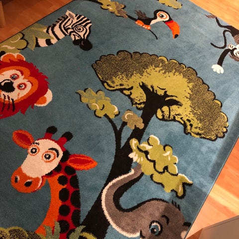 Rigtig godt tæppe til børn. God kvalitet, tyk og blødt til de små. Nypris 2.100,- Undertæppe medfølger gratis. Fremstår med enkelte pletter, der kan vaskes væk.