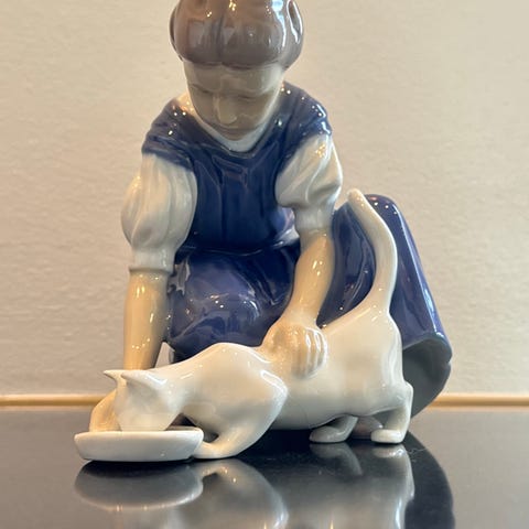 Royal Copenhagen Figurine Kvinde med Kat Porcelæn