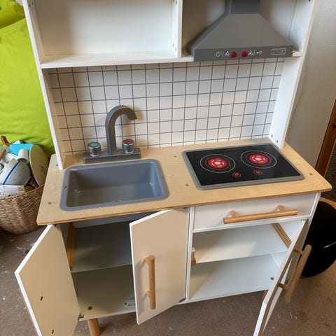 Legekøkken, butik og køleskab og mange madvarer der følger med. Så et komplet sæt og klar til at lege med. God stand.