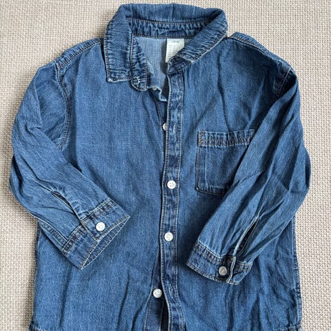 # babytøj til salg, H&M babytøj, denimskjorte baby, 4-6 måneder, børnetøj, genbrug babytøj, denim, baby skjorte, dreng eller pige