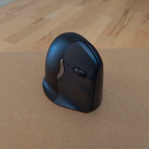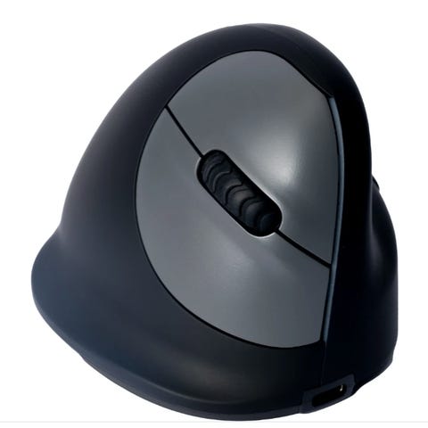 Ergonomisk vertikal mus med USB-kabel, designet til at reducere belastning ved brug. Musen har en unik form, der fremmer en naturlig håndposition.