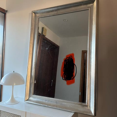 Super fint spejl med antik sølv kant i perfekt stand. Inkl vægbeslag.