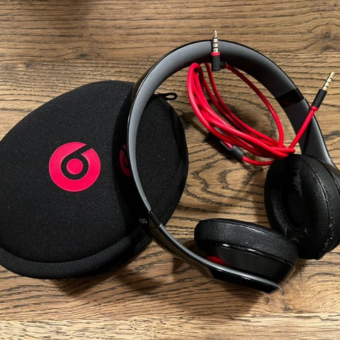 Beats hovedtelefoner i blå farve. Over-ear design med polstrede ørekopper og justerbar hovedbøjle. Trådløs forbindelse med indbygget batteri. Velegnet til daglig brug og lydafspilning.