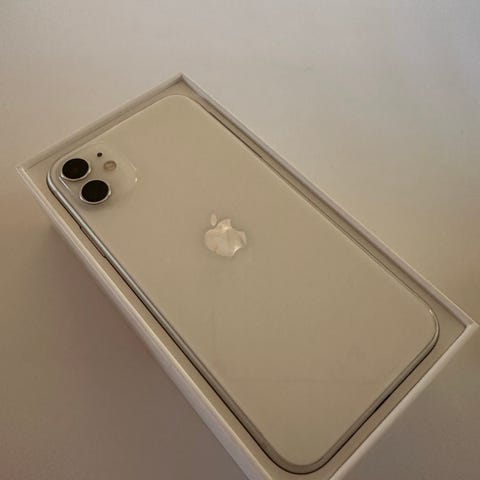 Apple iPhone 11 smartphone med 128 GB lagerplads i hvid farve.