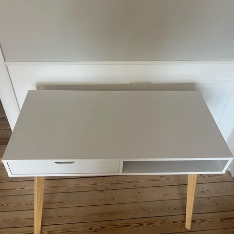 Skrivebordet sælges med et par ridser på toppen, men ellers i god stand.