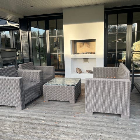 Udendørs flettet havemøbelsæt med pude og foldbart bord