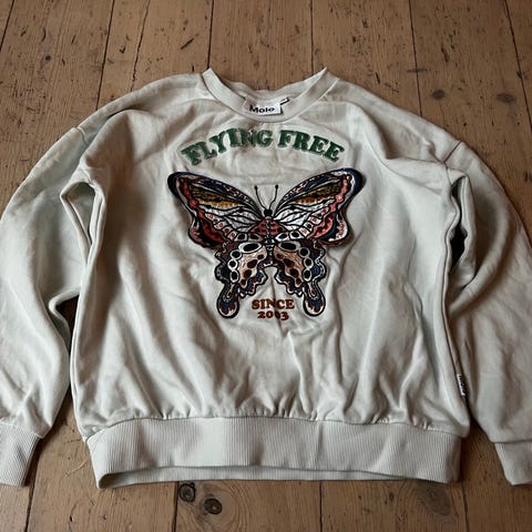 Molo Flying Free sweatshirt til piger i størrelse 116. Sweatshirten er multifarvet og lavet af bomuld. Den har en rund halsudskæring og lange ærmer med ribkant ved håndleddene og forneden.