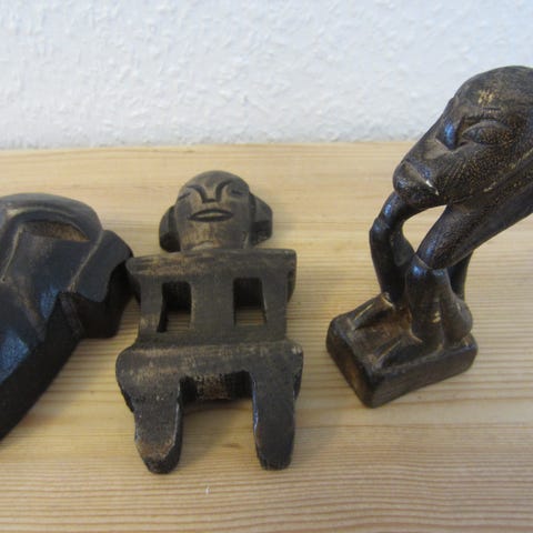 Håndlavet træskulptur fra Erzgebirge fra omkring 1940'erne bedre kendt som moosmann/ skovmand i flere materialer med udskåret ansigt, iført åben moskappe og hat lavet af tagpap,skæg i vat, holder en pibe og en stok, påsat en rektangulær base. ca. 22 cm høj. Lugter lidt af garage