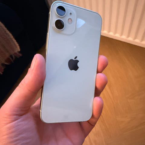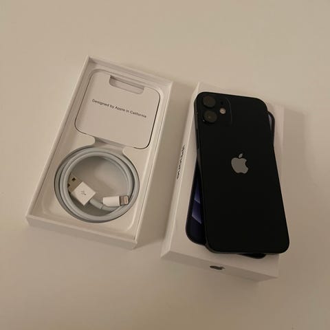iPhone 12 mini, 128GB, har ingen skader på skærm eller bagside, men som man kan se oppe i venstre hjørne er der en sort blænde men den har ingen betydning for brugen, har altid haft beskyttelse på, de 3 covers og 1 skærmbeskyttelse følger med. Den er nulstillet og klar til brug.
