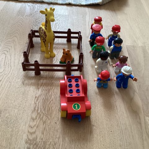 LEGO DUPLO dyresæt med giraffigur, elefantfigur, træ og andre tilbehør.