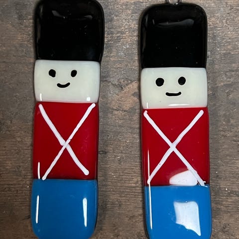 Fem tinsoldater i træ ca 10 cm og en ca 7 cm fra Stillenat