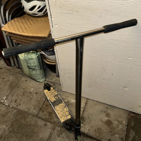 Sælger mit løbehjul da jeg ikke får det brugt så meget som ønsket. Købte det tilbage i maj 2025 og er brugt få gange. Jeg har grindet så malingen er ridset af i bunden. Der følger en str M hjelm med og der sidder en GoPro Mount på fjernes gerne hvis ønskes. Det koster 1200kr fra ny inde på scooter world. SKAL AFHENTES i Nørre Aaby. Prisen er til at forhandle med