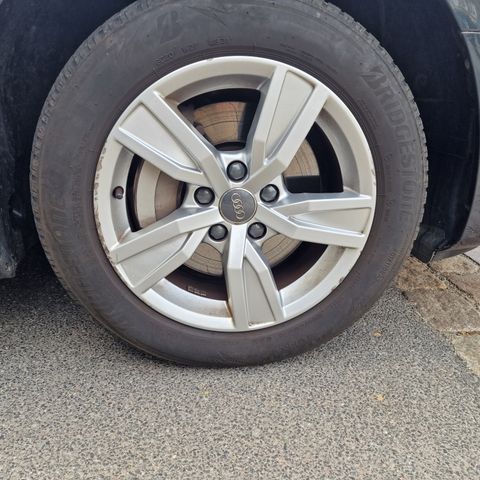 Pæne originale Audi alufælge 7,5x16 med kvalitets-vinterdæk, Goodyear Ultragrib Ice 2. 215/60/16 99T. M+S og Bjergtop mærket. I.ndpresningsdybde ET 47