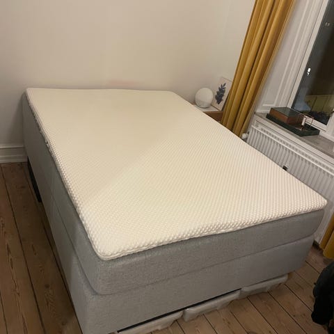 Sengen måler 140x200 cm og er ca 3 år gammel.