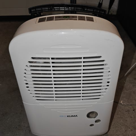 GRAD luftaffugter i hvid farve. Enhed med digitalt display og kontrolpanel på toppen. Designet til at reducere luftfugtighed i rum.