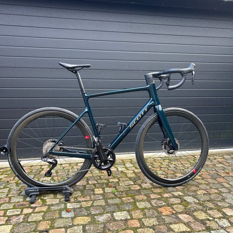 Scott Addict Disc fra 2021 i størrelse L. Scott Addict serien er Scotts bud på en let endurance racer.