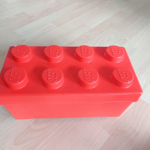 2 stk. sorte Lego opbevaringsklodser med 4 knopper som kan stables som små legoklodser.