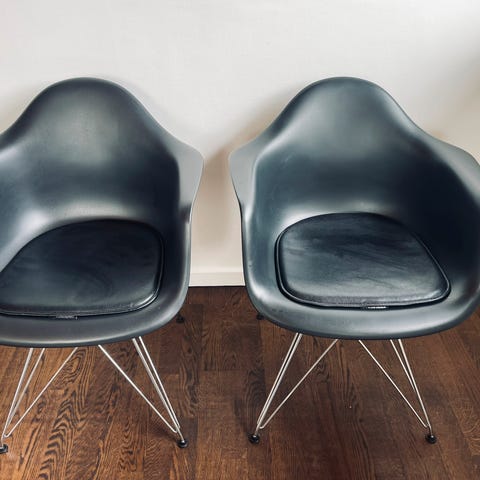Ikonisk designklassiker designet Charles og Ray Eames for Vitra. Farven er hvid med sort / pebble stel.