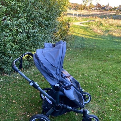 Alt er i god stand og fuldt funktionelt. Der er ingen skjolder, eller andre mærker på vognen. Venstre del af styret har ridsemærke (se billede) og ligeledes har klapvognsdelene også en anelse slid, hvor børnenes fodtøj har været (se billede). Intet af af betydning for funktionalitet e.l.