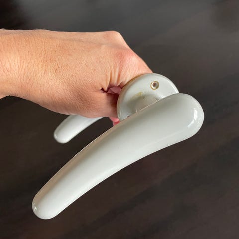 Originale grå 70er dørhåndtag med tilhørende nøgle skilte og træ skruer skruer. 8 stk haves. Pris pr stk.