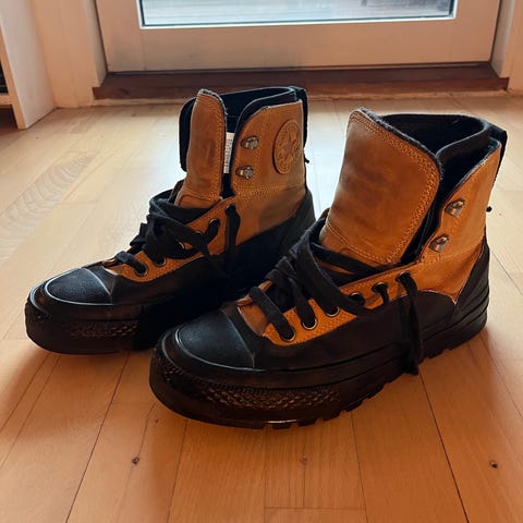 Kan bruges som vinterstøvle, da de foret. Farven er beige og i god stand.