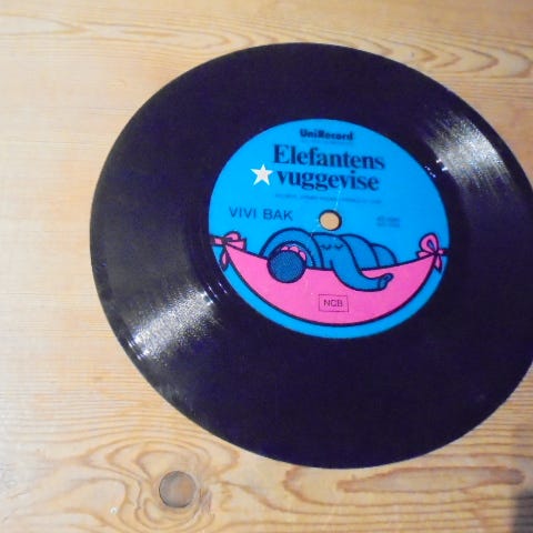 Fra UniRecord, all Rights Reserved er her en gammel plastikplade med Elefantens Vuggevise.