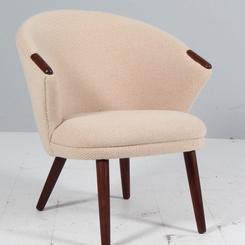 Nyrenoveret med nyt skum og lækker hvid boucle stof, med høj slidstyrke.