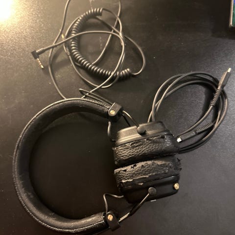 Marshall hovedtelefoner i sort farve. Over-ear design med polstret hovedbøjle og ørepuder. Afhentes med opbevaringspose og tilslutningskabel. Materiale og specifikke modeloplysninger ikke angivet.