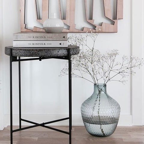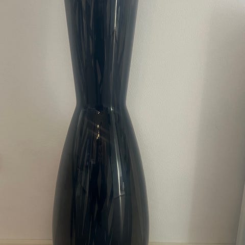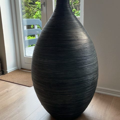 Flot stor krukke/gulvvase i hvid med beige striber. Måler 60 cm i højden.