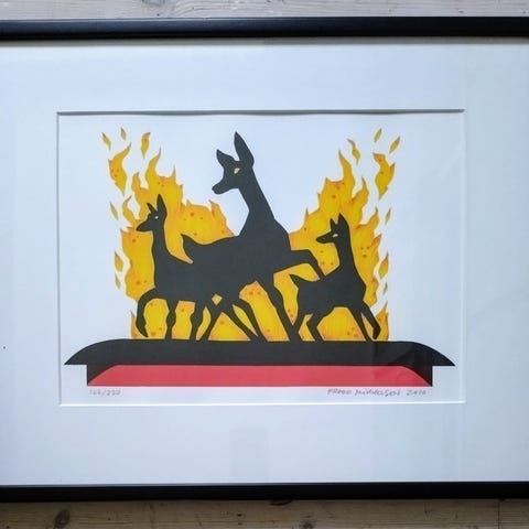 Stor flot professionelt indrammet litografi. Med klare farver, kraftig passpartout og sort ramme.
