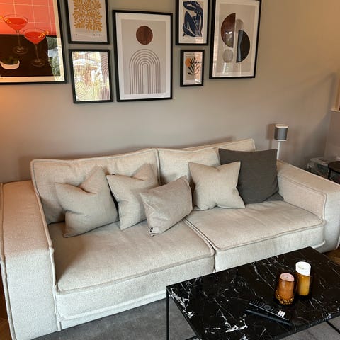 Helt ny skøn sofa, men passer ikke til nuværende sted. Gør et røverkøb.