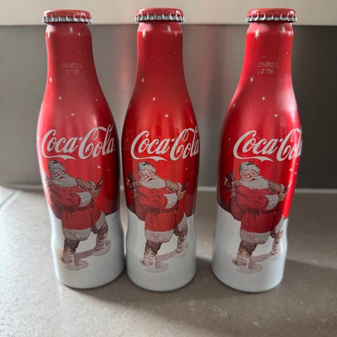 Coca cola julekugler i metal, kan åbnes og lægges en lille overraskelse inden i.