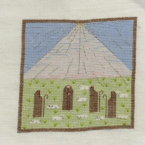😇 ✨️🛖 🌴 Broderi Broderet Billede, Krybbe, Jesusbarnet Julekrybbe