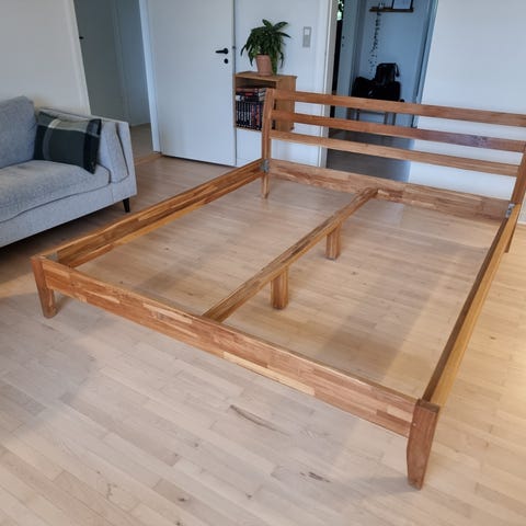 Det moderne sengestel er et flot møbel, der blander nutidig stil med praktisk brug. Det er designet til at passe ind i enhver indretning og står for enkelhed og rene linjer som kendetegner moderne æstetik. Den rektangulære form giver rummet et elegant udtryk, perfekt til dem der elsker minimalistisk design. Dette sengestel er ikke bare en ting; det tilbyder komfort og stil, der løfter rummets atmosfære og giver visuel appel. Massivt fyrretræ hovedgærde Hovedgærdet er lavet af massivt fyrretræ, som giver lang tid holdbarhed og en del naturlig elegance. Det er valgt for styrken og hvordan det nemt passer ind i ethvert soveværelse, og skaber en stabil og jordnær baggrund til dit rum. Konstrueret træramme Sengens hovedstruktur er lavet af konstrueret træ, som er kendt for stabilitet og styrke. Det sikrer, at sengen holder i lang tid og giver et solidt fundament for en god nats søvn, samtidig med at det ser pænt ud. Fast lamelbund Den stive lamelbund øger støtte til madrassen og sikrer komfort. Lamelbundene er placeret strategisk for at minimere bevægelse, hvilket bidrager til en stabil soveoverflade, der forbliver pålidelig og fast. Minimalistisk moderne design Dette sengestel har rene linjer og funktionel struktur, perfekt til moderne rum. Den alsidige stil passer let sammen med andre soveværelsesmøbler og skaber et pænt og organiseret udtryk. Nem vedligeholdelse Det er nemt at holde rent - tør bare overfladen af med en fugtig klud for at fjerne støv. Riktig pleje holder rammens udseende flot, så det forbliver et stilfuldt element i dit soveværelse. Farve: SortMateriale: Massiv fyrretræRammemateriale: Konstrueret træSamlede dimensioner: 143 x 200 x 100 cm (L x B x H)Madras størrelse: Dobbeltseng (140 cm x 200 cm eller 55" x 79")Maks. vægt: 200 kgHar spiret ramme: JaMaksimalt antal mennesker: 2AndetLet at rengøremed madrasMed skuffeForsamling krævet: JaLeveringsindhold:1 x Senge ramme1 x Hovedgærde
