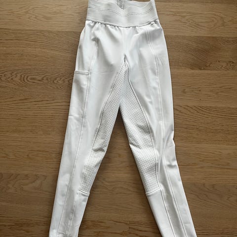 Super fine hvide ridebukser fra Pikeur - str 36 med fullgrip. Super flotte detaljer med lille sølvstribe og bredt elastik i livet. Helt nye med prismærke på. Str 72 hvilket svarer til str 36. Der er to lille bitte pletter på bagsiden af elastikken i livet men kun noget man kan se helt tæt på (se sidste billede).