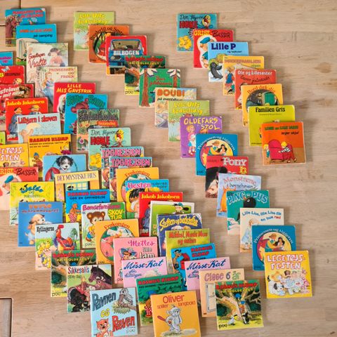 Samling af gamle Pixi bøger med forskellige titler og illustrationer. Nogle er mere brugte end andre. Pris for alle 28 stk