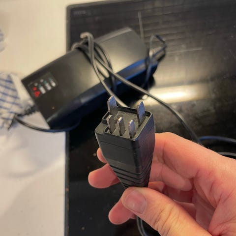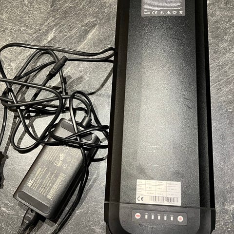 Lader til batteriet, som bl.a. passer til en baghjulsmotor på en Christiania cykel.