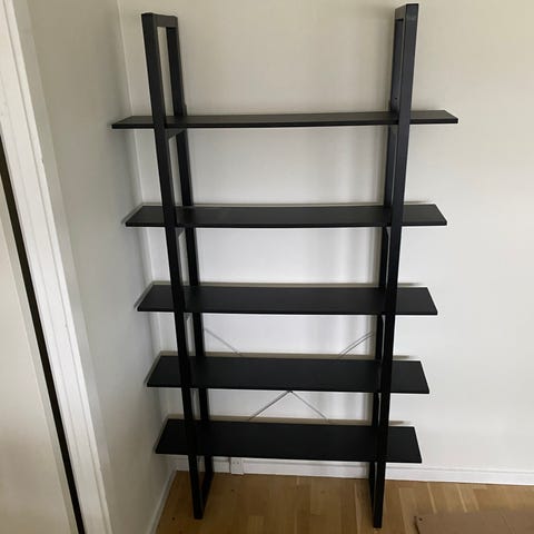 2 sorte reoler som både kan stå på jorden og hænge på væggen. Enkelte små ridser men generelt pæne. Nypris 1200 kr stk. Køb begge reoler for 500kr