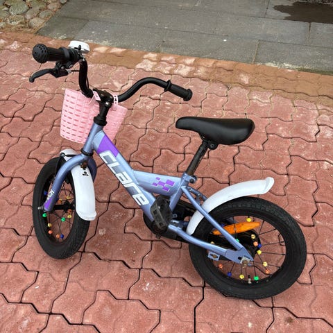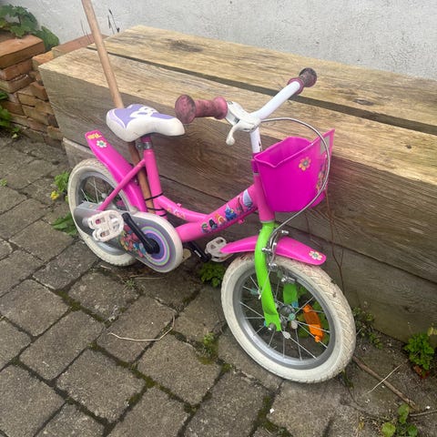 14 tommer hjul og klar til tur med både støttefod, reflekser, skærme og ringeklokke. Bremser med fodbremse plus håndbremse foran. 1 gear.