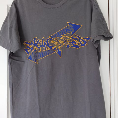 Levi's T-shirt i blå farve, størrelse XL til herre. Fremstillet i 100% bomuld. Med print, kraftig kvalitet, god stand, nyvasket
