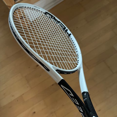 fra 2024: str 98 hoved, 305 g vægt, greb 2. Kommer med næsten nyt overgrip. Strenge i fin stand.