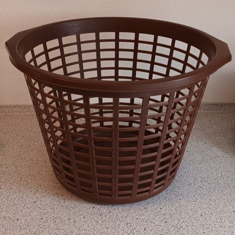 Rund vasketøjskurv fra Curver i mørkegrå.