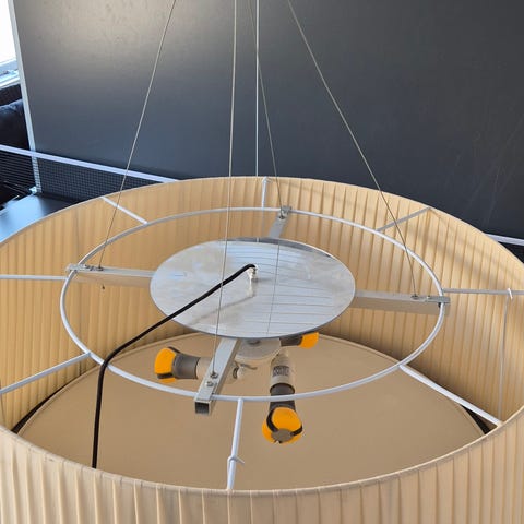 Stor Per Sundstedt "the bucket" / Hinken kosta lampan. Den er nok mest oplagt over et spisebord og har endvidere en afbryder ovenpå, som man hertil kan bruge, hvis man vil.