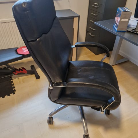 Fin, let og ikke særlig brugt kontorstol, der kan hæves og sænkes.
