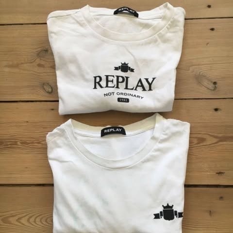 Replay St. Diego T-shirt i sort farve, størrelse XL, fremstillet af bomuld. Vintage med tryk på fronten og rund halsudskæring. Designet til mænd. Passer som en str. L, god stand, nyvasket.