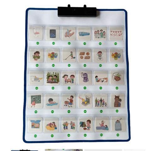 Interaktiv væg til piktogrammer. Du trykker på piktogrammet du selv har sat i og så kan du indtale hvad den skal sige. Den er rigtig god, vi fik desværre 3 i gave så vi sælger den ene. God til børn der skal.lære sprog eller til handikappede. Helt ny. Ny pris 429 kr.