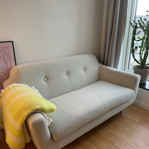 Fin 2 personers sofa i råhvid farve. Betræk kan tages af og beske hvilket gør det nemt at holde den. Super behagelig og pæn at se på.