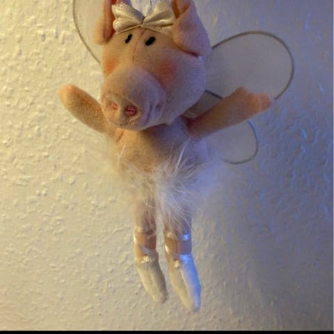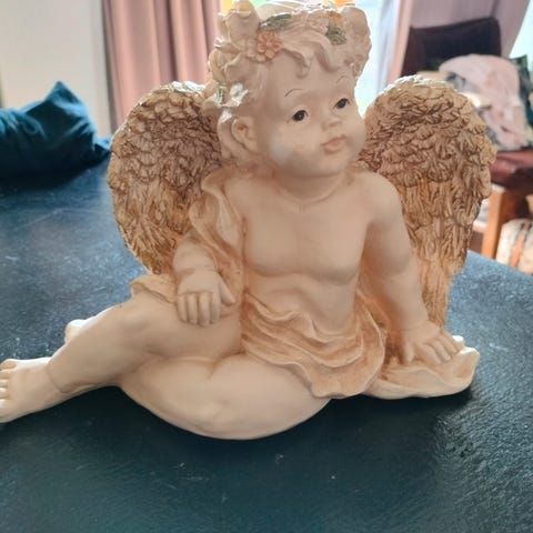 Dekorativ, gammel engel figur, højde 13 cm, fremstillet med detaljeret udformning - med patina.