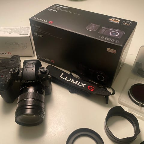 Med lader, rem og 2 Panasonic batterier (med org. æske). Kan bruges med power bank. Også muligt at optage video i ProRes format over USB direkte til SSD. objektiver: Panasonic Leica DG Vario-Summilux 10-25mm f/1.7 ASPH. MFT og Panasonic Leica DG Vario-Summilux 25-50mm f/1.7 ASPH. MFT.