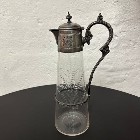 Karafler, vinkander, antikke engelske vinkander, glas og sølv